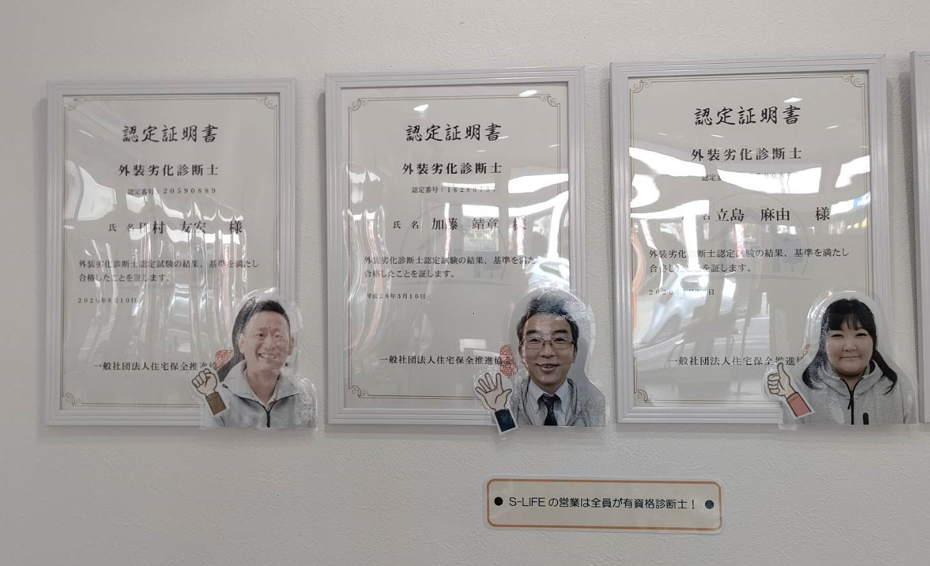 セーフティーライフは、全アドバイザーが外装劣化診断士の資格を保有しています。
