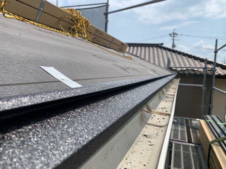 軒先水切り板金は、軒先を固定して、飛ばされないようにする重要な役割もあります。屋根カバー工事