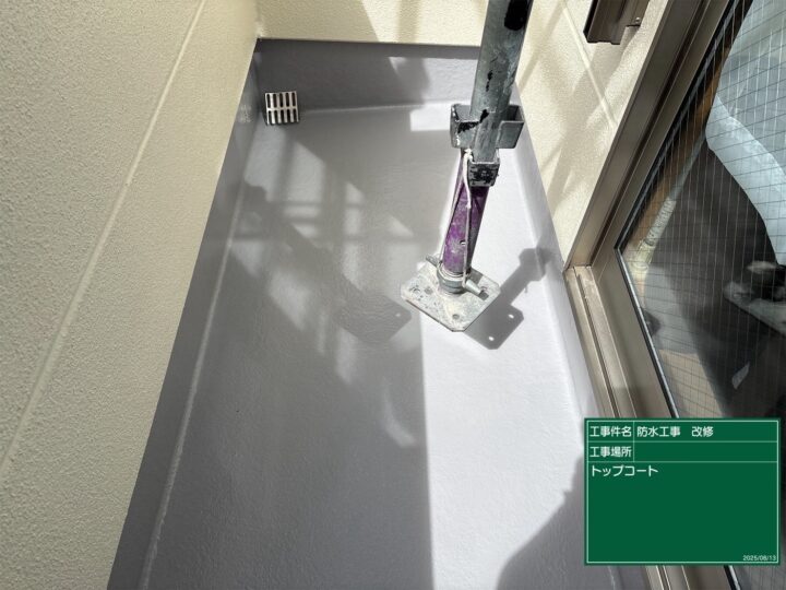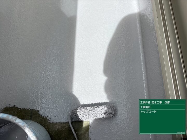 仕上げ材を塗ることで耐久性を持たせ、美しく仕上げることができます。ベランダ防水工事