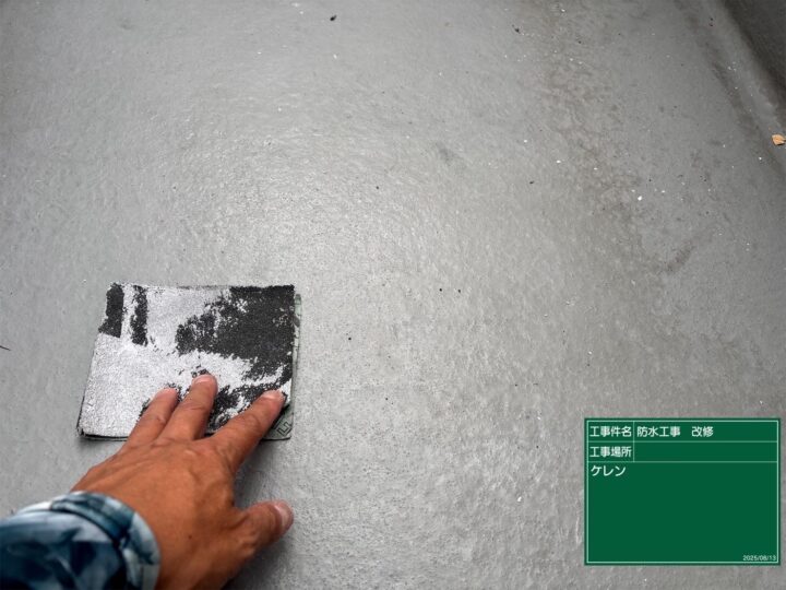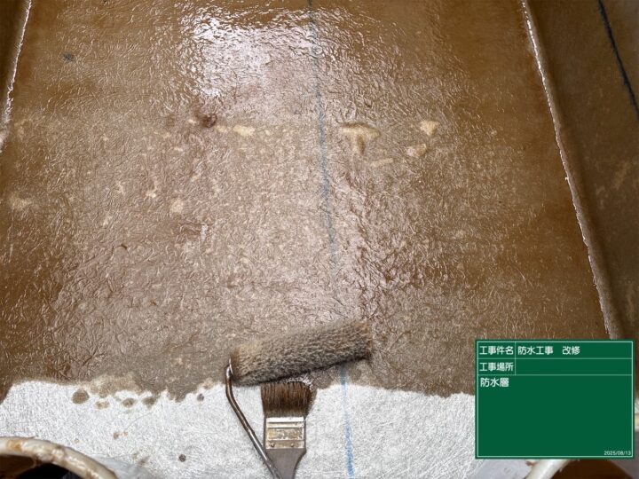 またガラスマットが目立つと美しい仕上がりになりにくいため、美観性の面でも中塗り作業はとても大切な工程です。ベランダ防水工事