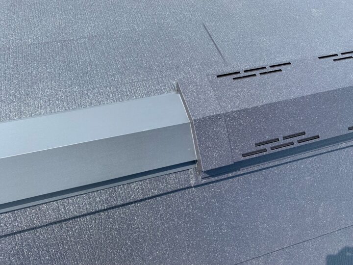 棟板金で包み込むようにおさめることで、雨水の侵入を確実に防ぎます屋根カバー工事