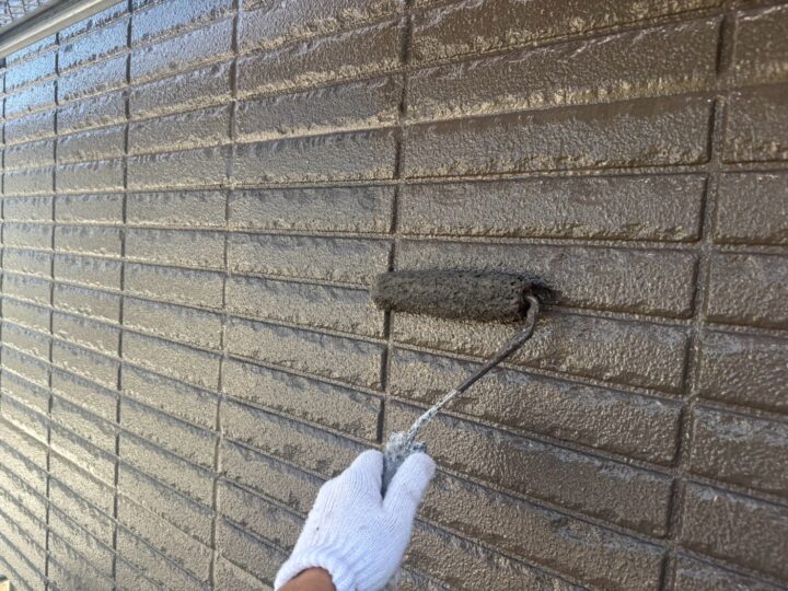 その壁に最も合う上塗り材との相性が良く、密着性の高い下塗り材を選択し、塗布します。