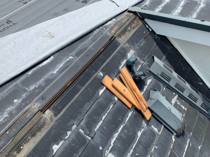 既存の、棟板金や棟下地を撤去します。屋根カバー工事