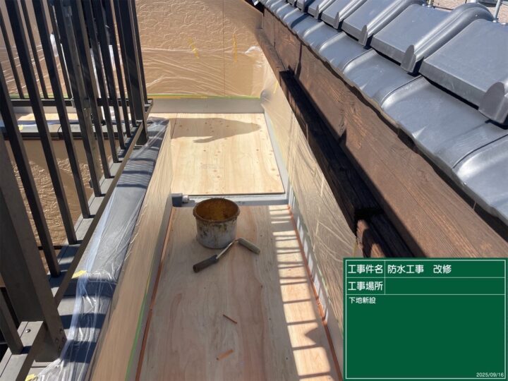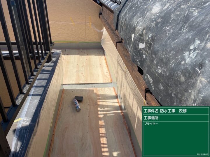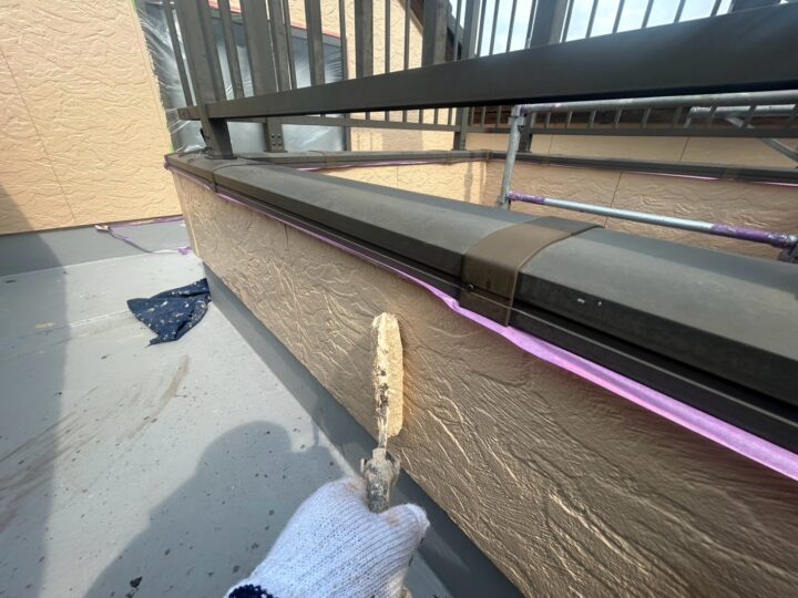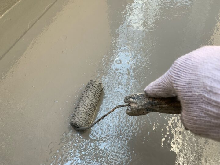 このプライマーが、次の塗料をしっかりと密着させ、耐久性を高めるための大切な役割を果たします。ベランダ防水作業