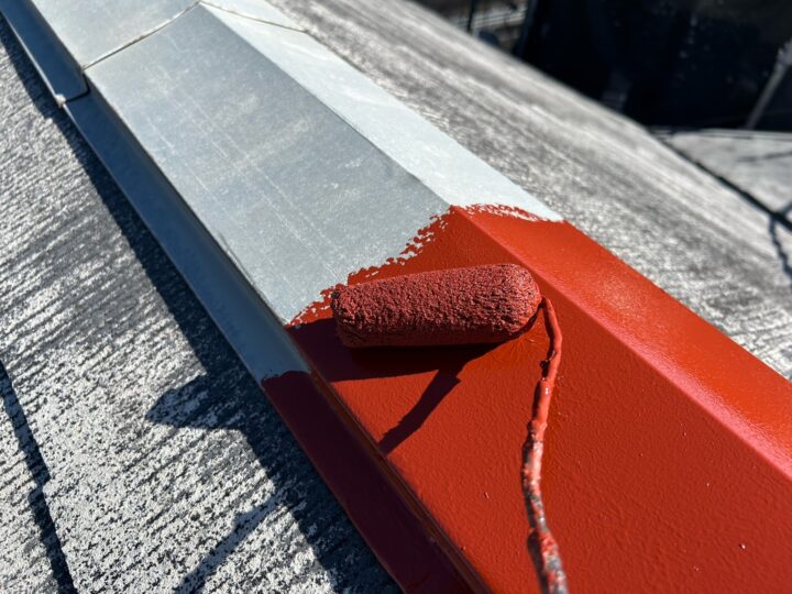 棟板金をサビから守るため、下塗り材にサビ止め塗料を使用します。