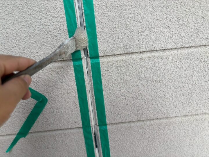 シーリング材との接着性をさらに高めるため、プライマーを塗布します。シーリング作業