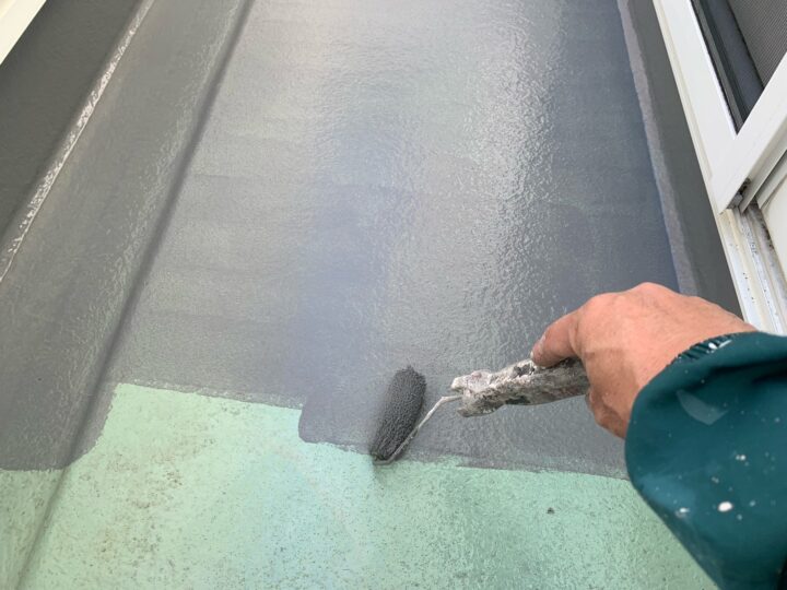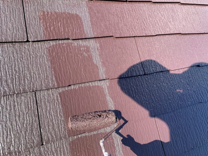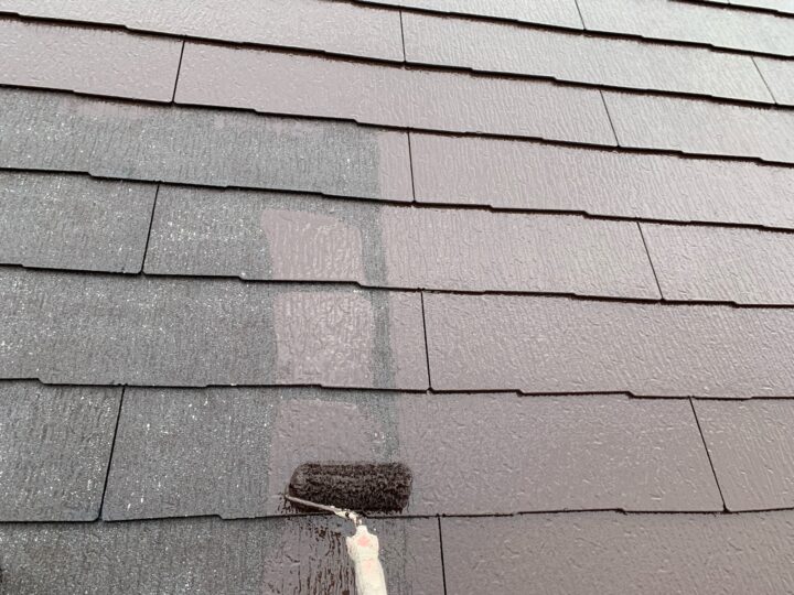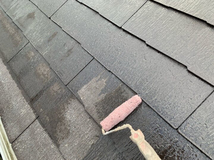 下塗りは、屋根材と上塗り塗料との間の接着剤として、また細かなひび割れの補修が主な役割です。