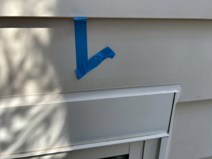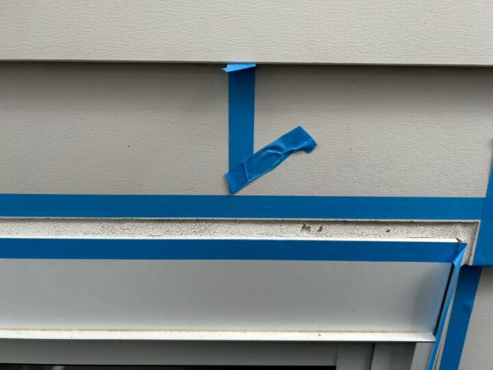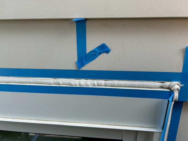 外壁にプライマー(下塗り材)やシーリング剤を付けないために、マスキングテープを貼っていきます。