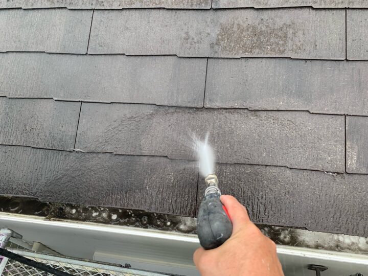 建築物専用の「高圧洗浄機」にて洗浄します。