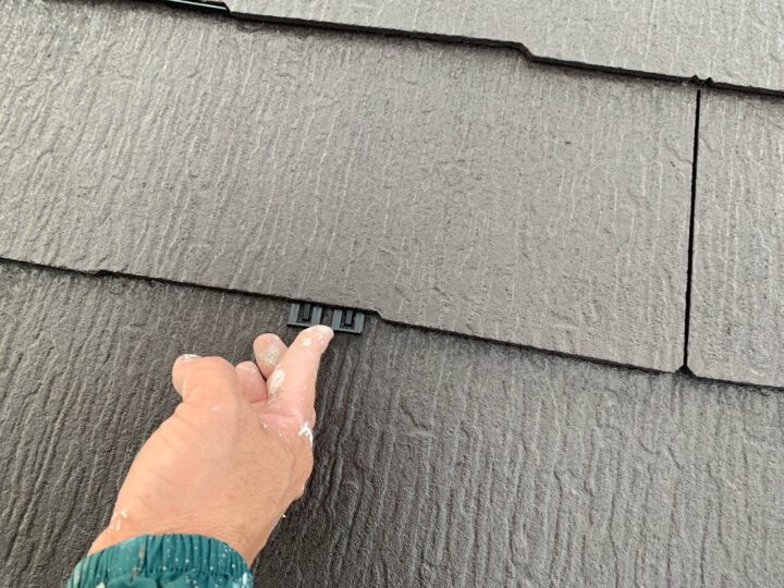 屋根材の重なり部分に差し込むことで、塗料が乾燥して屋根材同士が密着してしまうのを防ぎ、雨水の排水路と通気性を確保します。