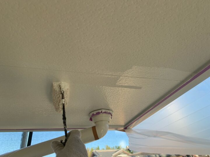 防藻性、防カビ性、透湿性に優れた軒天専用塗料を塗布します。