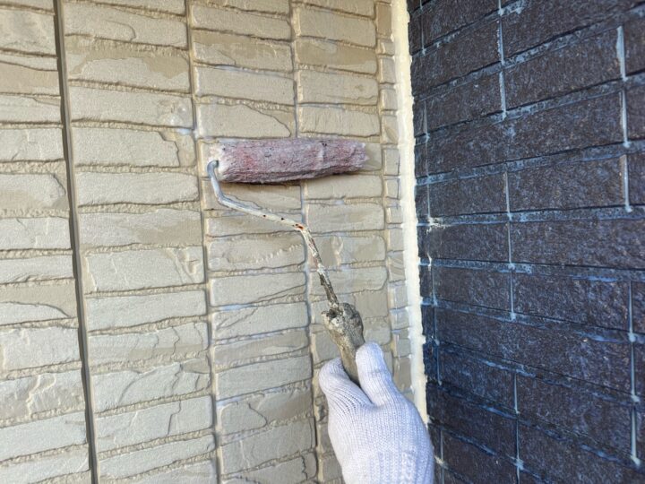 その壁に最も合う上塗り材との相性が良く、密着性の高い下塗り材を選択し、塗布します。