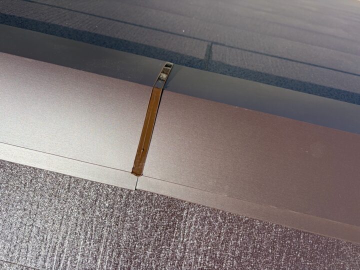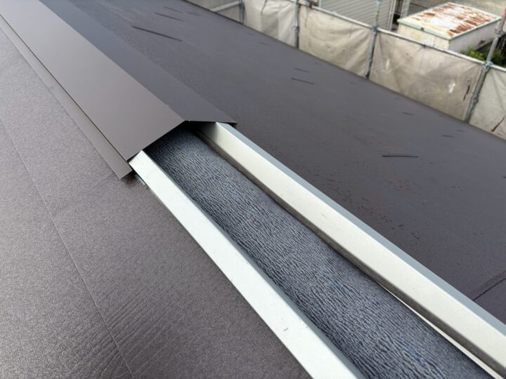 棟板金で包み込むようにおさめることで、雨水の侵入を確実に防ぎます