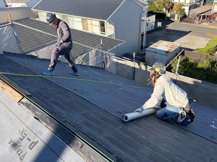 こうすることで、雨水が入り込んでもルーフィングの下には入ってきません。