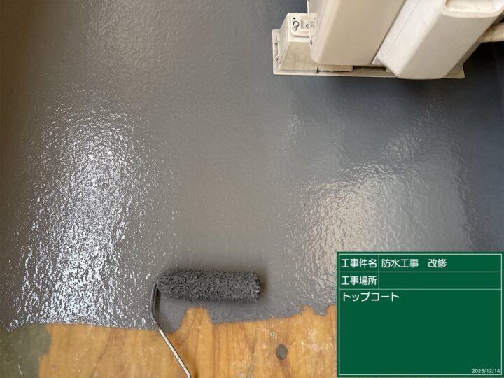そのため、耐候性に優れたトップコートを表面にコーティングし、防水層を日差しや雨風から守ります。
