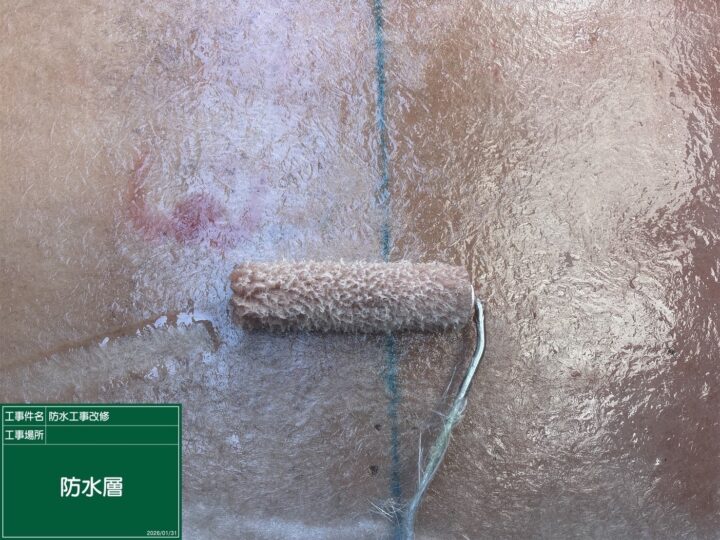この下塗り層が、建物本体と新しいFRP防水層を強力に結びつける架け橋となり、長期間にわたって膨らみや剥離が起きない丈夫な床面を作り上げます。