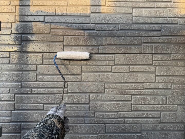 外壁の傷み具合や素材に合わせて最適な下塗り材を選定し、ローラーでたっぷりと塗り込みます。