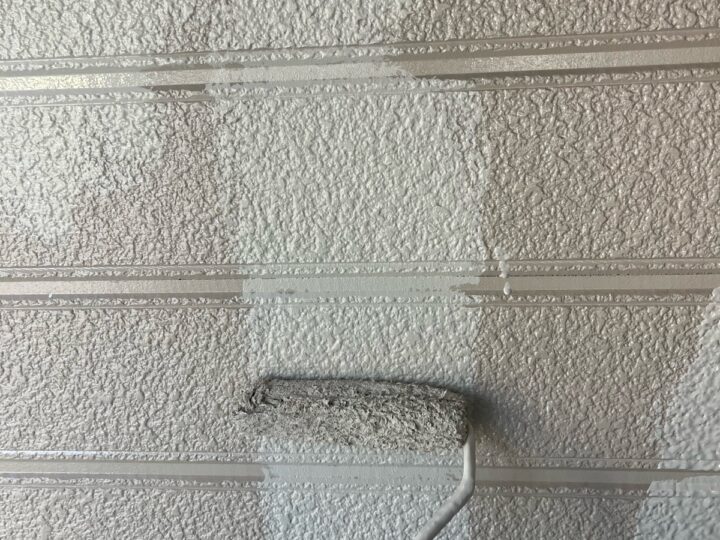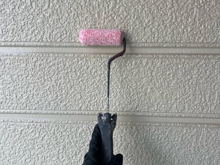塗りムラが出ないよう、ローラーや刷毛を使って一定の厚みで丁寧に塗り進めることで、最後の上塗り作業がより美しく、よりしっかりと密着するための土壌を整えます。