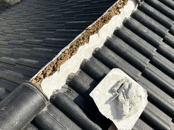 漆喰には雨水の浸入を防ぐだけでなく、強風などで瓦がズレるのを抑える重要な役割があります。