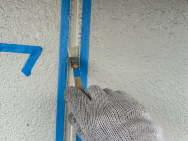 シーリング施工前に、周囲を汚さないようマスキングテープで養生を行います。